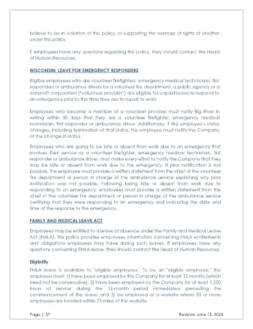 believe to be in violation of this policy, or supporting the exercise of rights of another
