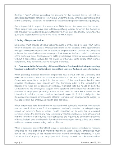timing of the need for leave is not foreseeable, employees must provide the Company