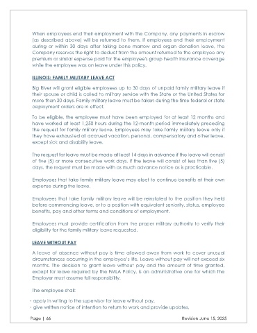 Big River will grant eligible employees up to 30 days of unpaid family military leave if