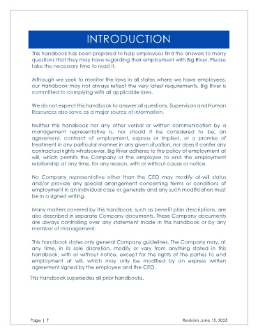 contractual rights whatsoever. Big River adheres to the policy of employment at