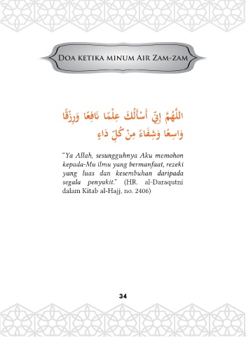Doa ketika minum Air Zam-zam “ ” (HR. al-Daraqutni dalam Kitab al-Hajj, no. 2406) 34