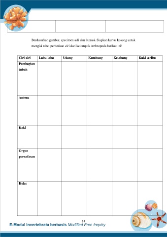 mengisi tabel perbedaan ciri dari kelompok Arthropoda berikut ini!