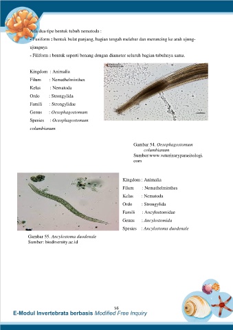 - Filiform : bentuk seperti benang dengan diameter seluruh bagian tubuhnya sama.