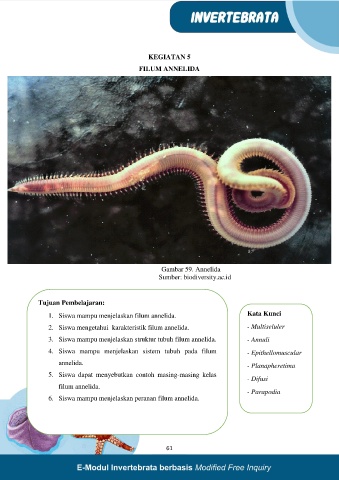 1. Siswa mampu menjelaskan filum annelida. Kata Kunci