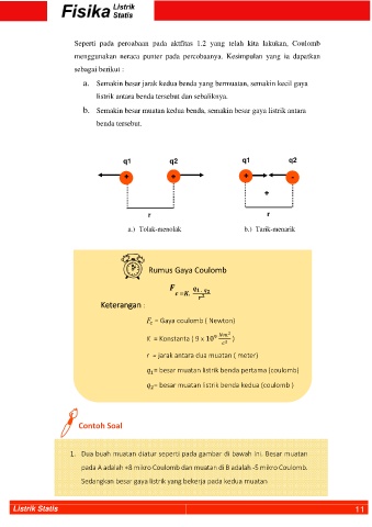 Seperti pada peroabaan pada aktfitas 1.2 yang telah kita lakukan, Coulomb