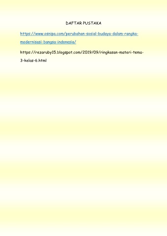 DAFTAR PUSTAKA https://www.osnipa.com/perubahan-sosial-budaya-dalam-rangka- modernisasi-bangsa-indonesia/ https://rezaruby15.blogspot.com/2019/09/ringkasan-materi-tema- 3-kelas-6.html