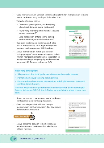 • Siswa membaca teks tentang rantai makanan