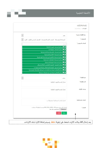 اﻷﻧﺷطﺔ اﻟﺗﻌﻠﯾﻣﯾﺔ بﻌﺪ إدﺧﺎل كﺎﻓﺔ ﺑ�ﺎﻧﺎت اﻻﺛﺮاء ،اﺿﻐﻂ ﻋ� ا�ﻘﻮﻧﺔ ﺣﻔﻆ .وﺳيﺘﻢ إﺿﺎﻓﺔ اﻻﺛﺮاء ﻟﺒﻨﻚ اﻻﺛﺮاءات. 57