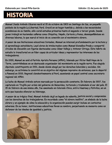 Manuel Jesús Arévalo Cáceres nació el 15 de octubre de 1903 en Santiago de Cao, un pequeño