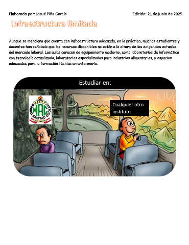 Aunque se menciona que cuenta con infraestructura adecuada, en la práctica, muchos estudiantes y