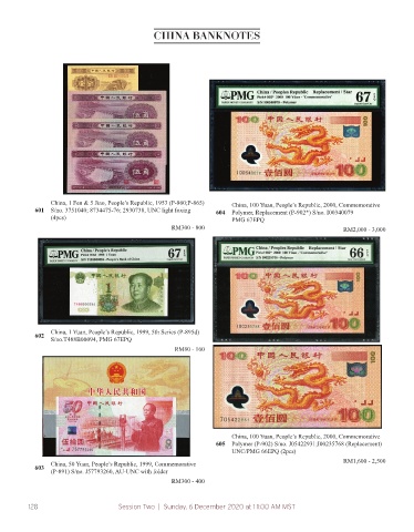 China, 1 Fen & 5 Jiao, People’s Republic, 1953 (P-860;P-865) China, 100 Yuan, People’s Republic, 2000, Commemorative