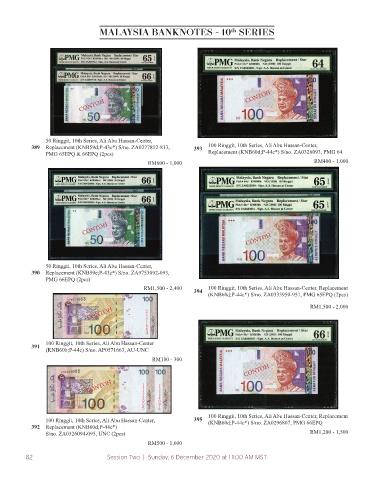 389 Replacement (KNB59d;P-43c*) S/no. ZA0277812-813, 393 100 Ringgit, 10th Series, Ali Abu Hassan-Center,