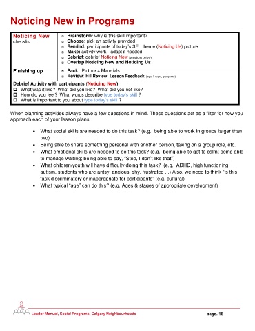 Leader Manual, Social Programs, Calgary Neighbourhoods page. 18