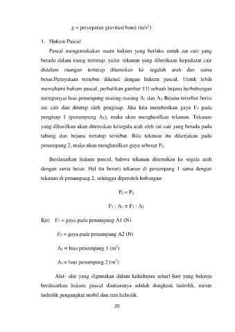besar.Pernyataan tersebut dikenal dengan hukum pascal. Untuk lebih