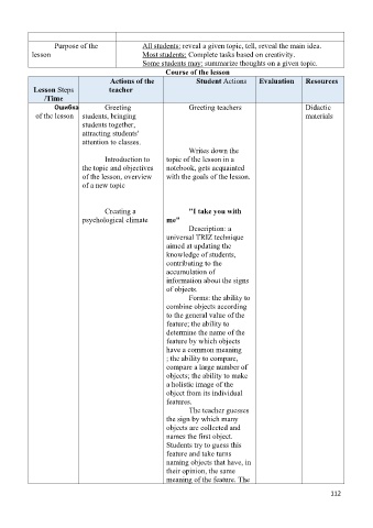 Purpose of the All students: reveal a given topic, tell, reveal the main idea.