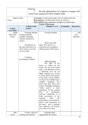Purpose of the All students: reveal a given topic, tell, reveal the main idea.