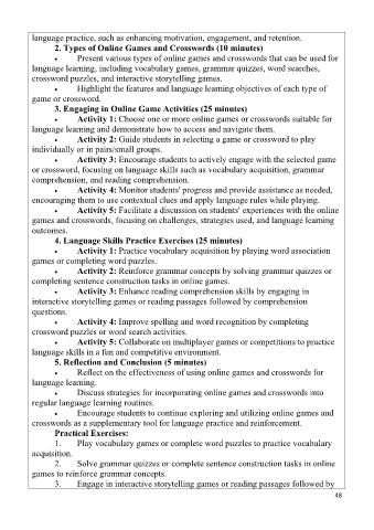 or crossword, focusing on language skills such as vocabulary acquisition, grammar
