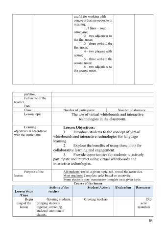 Lesson topic The use of virtual whiteboards and interactive
