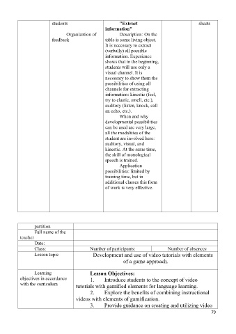 Lesson topic Development and use of video tutorials with elements