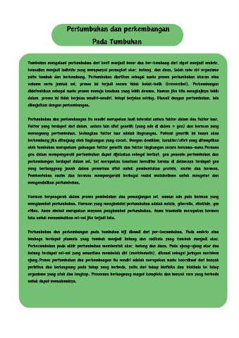 Tumbuhan mengalami pertumbuhan dari kecil menjadi besar dan ber-kembang dari zigot menjadi embrio,