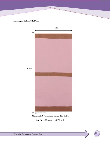 Rancangan Bahan Tile Polos 75 cm 150 cm Gambar 28. Rancangan Bahan Tile Polos Sumber : Dokumentasi Pribadi 30 E-Modul Pembuatan Busana Pesta
