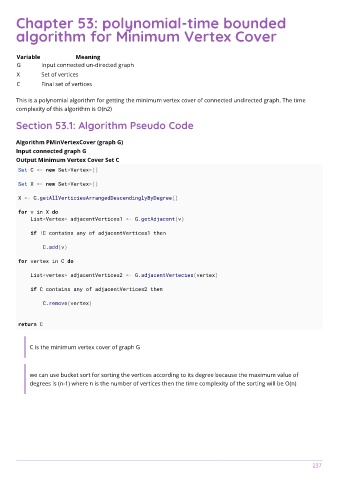 This is a polynomial algorithm for getting the minimum vertex cover of connected undirected graph. The time