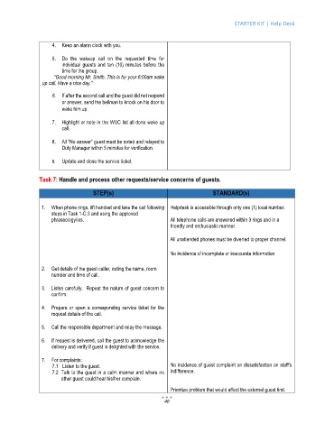7.2 Talk to the guest in a calm manner and where no indifference.