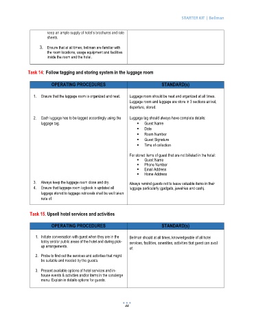 1. Ensure that the luggage room is organized and neat. Luggage room should be neat and organized at all times.
