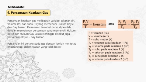 Persamaan keadaan gas melibatkan variabel tekanan (P), P. V P . V P .