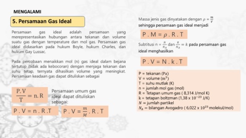 Persamaan gas ideal adalah persamaan yang P . M = . R . T