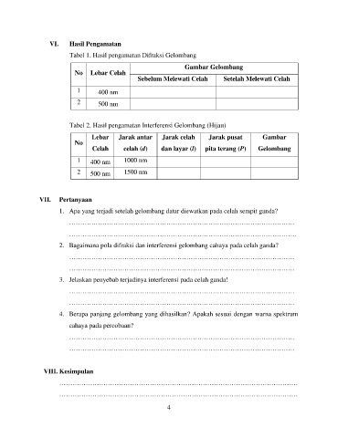 Tabel 1. Hasil pengamatan Difraksi Gelombang