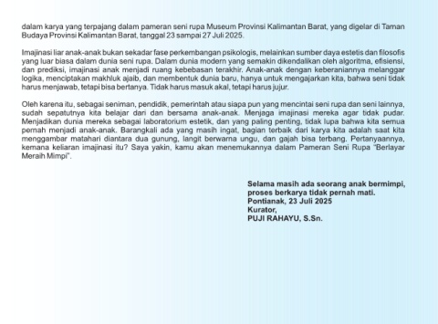 dalam karya yang terpajang dalam pameran seni rupa Museum Provinsi Kalimantan Barat, yang digelar di Taman