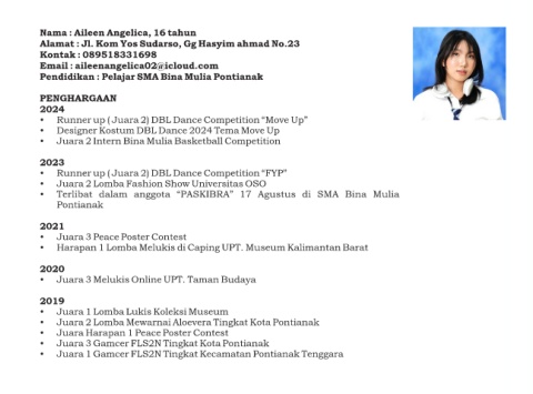 Pendidikan : Pelajar SMA Bina Mulia Pontianak