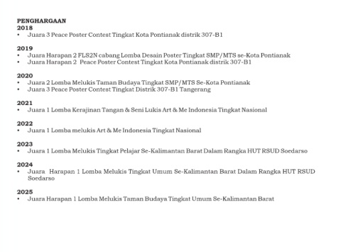 • Juara Harapan 2 FLS2N cabang Lomba Desain Poster Tingkat SMP/MTS se-Kota Pontianak