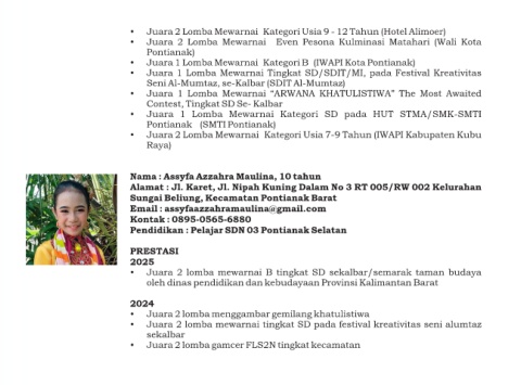 Nama : Assyfa Azzahra Maulina, 10 tahun