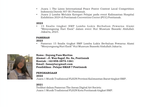 • Juara 2 Lomba Melukis Kategori Pelajar pada event Kalimantan Hospital