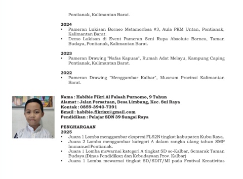 • Juara 1 Lomba menggambar ekspresi FLS2N tingkat kabupaten Kubu Raya.
