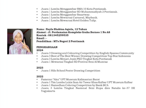 • Juara 1 Lomba Menggambar SMA 10 Kota Pontianak.