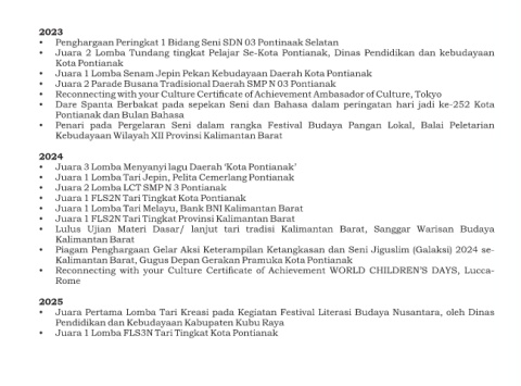 • Juara 1 FLS2N Tari Tingkat Provinsi Kalimantan Barat
