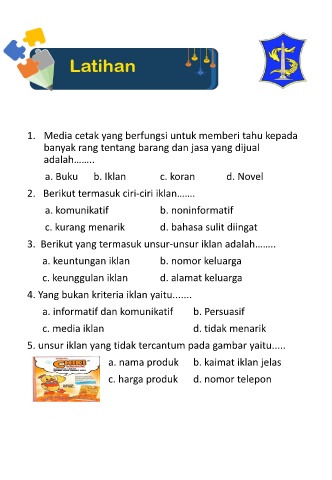 3. Berikut yang termasuk unsur-unsur iklan adalah……..