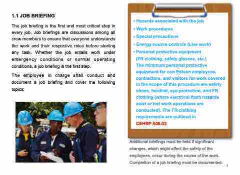employees, occur during the course of the work. Completion of a job briefing must be documented.