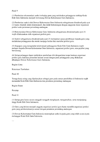 mematuhi Kode Etik Guru Indonesia dan peraturan perundang-undangan.