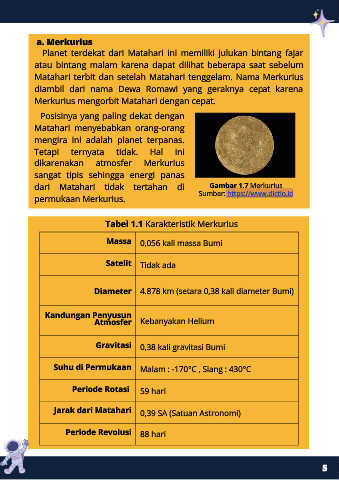 Jarak dari Matahari 0,39 SA (Satuan Astronomi)