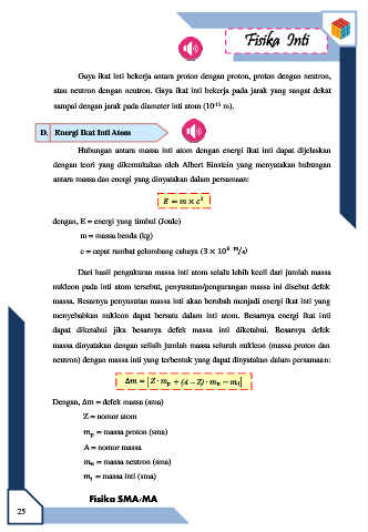 menyebabkan nukleon dapat bersatu dalam inti atom. Besarnya energi ikat inti