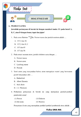 1. Pada unsur Barium 137,3 Ba. Nomor massa dan jumlah neutron adalah …
