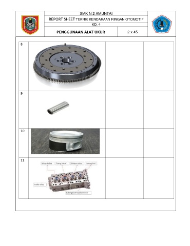 SMK N 2 AMUNTAI REPORT SHEET TEKNIK KENDARAAN RINGAN OTOMOTIF KD. 4 PENGGUNAAN ALAT UKUR 2 x 45 8 9 10 11