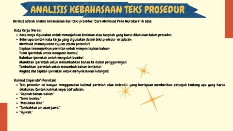 Berikut adalah analisis kebahasaan dari teks prosedur "Cara Membuat Pedo Muratara" di atas: