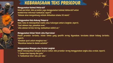 Selain perintah, teks prosedur juga menggunakan kalimat deklaratif untuk