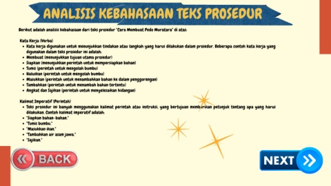 Berikut adalah analisis kebahasaan dari teks prosedur "Cara Membuat Pedo Muratara" di atas: