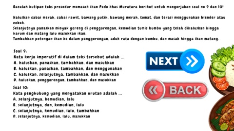 Bacalah kutipan teks prosedur memasak ikan Pedo khas Muratara berikut untuk mengerjakan soal no 9 dan 10!